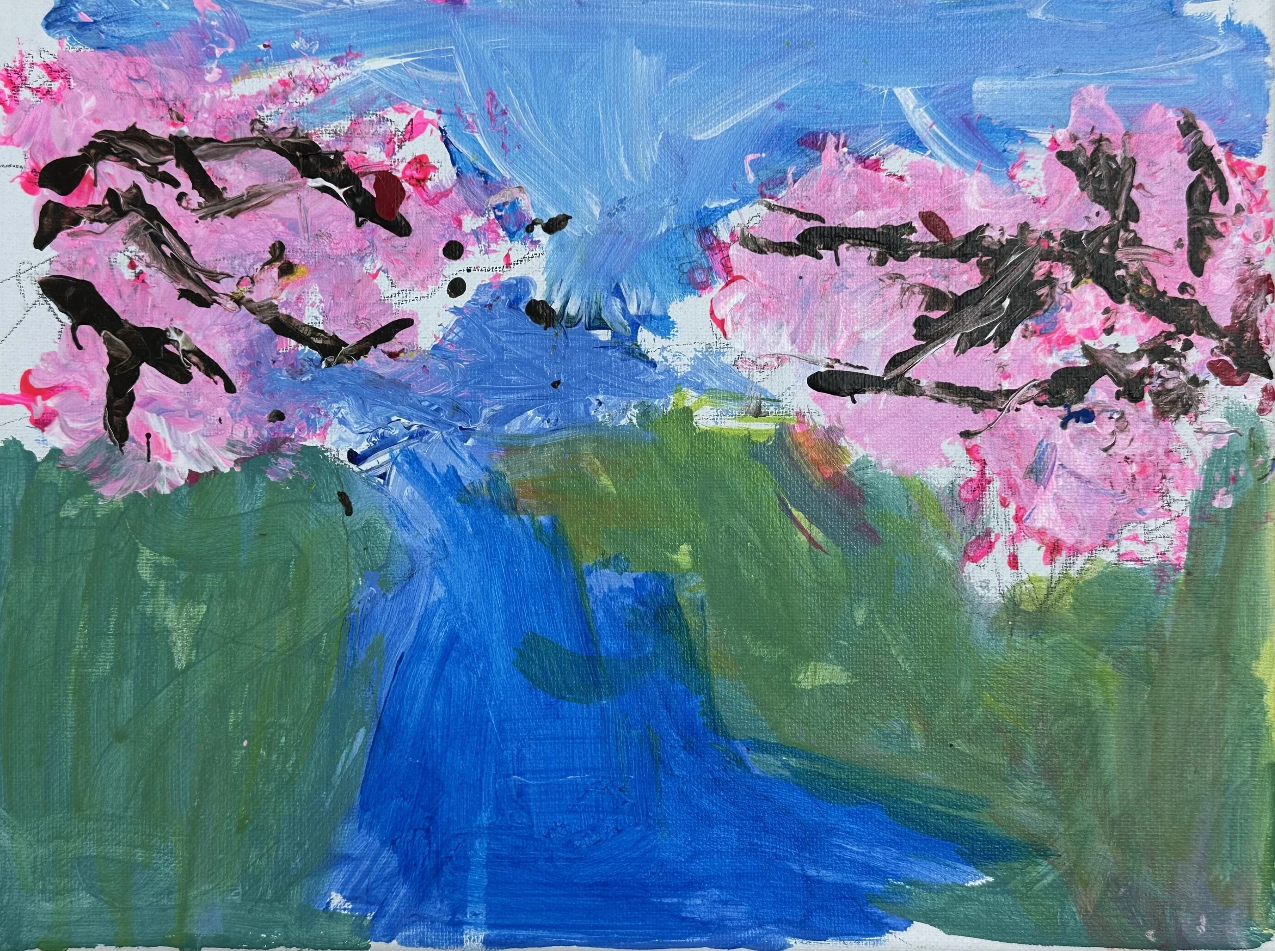 Creative experimentation, texture exploration, composition, and expressive painting techniques.