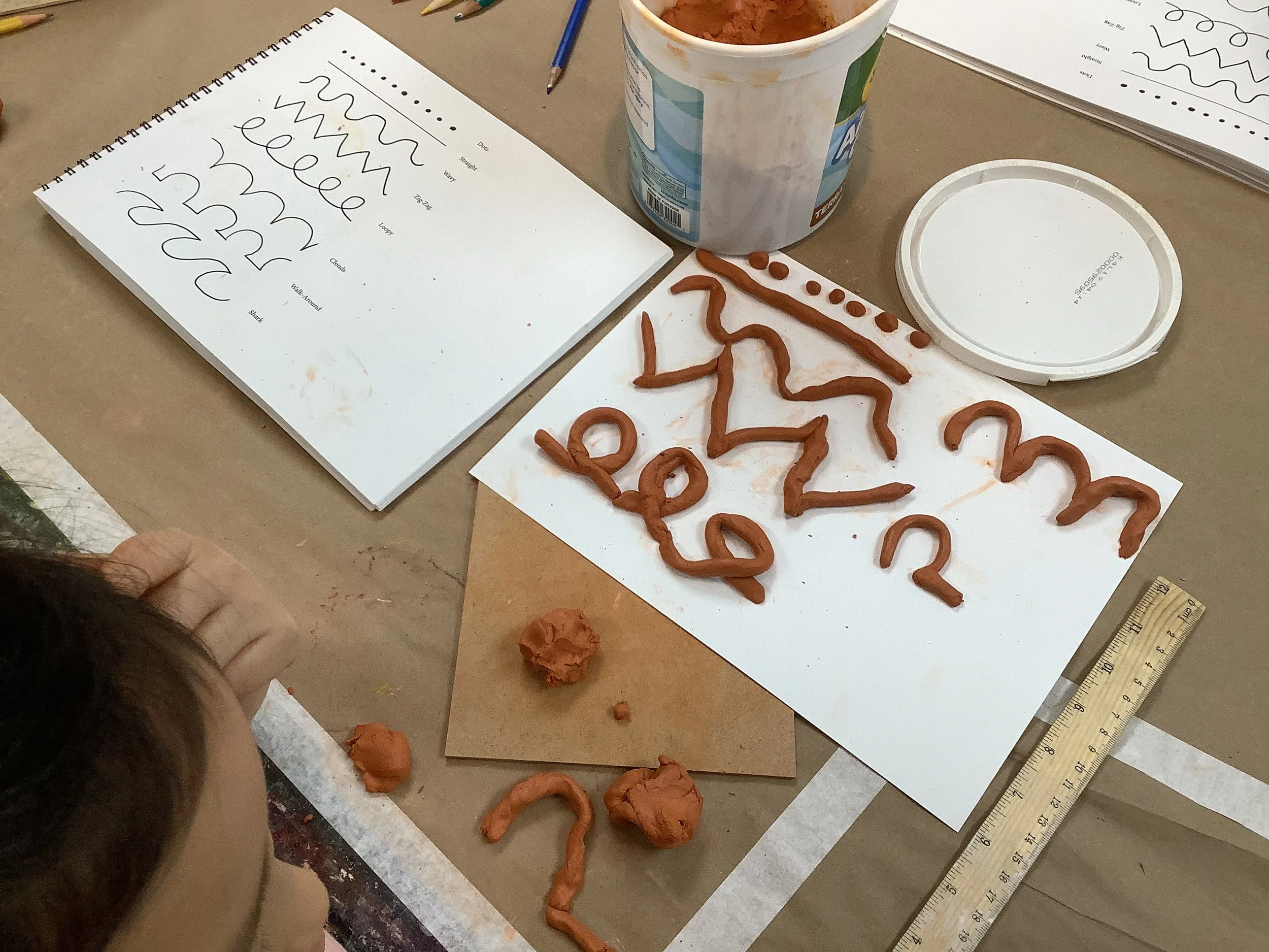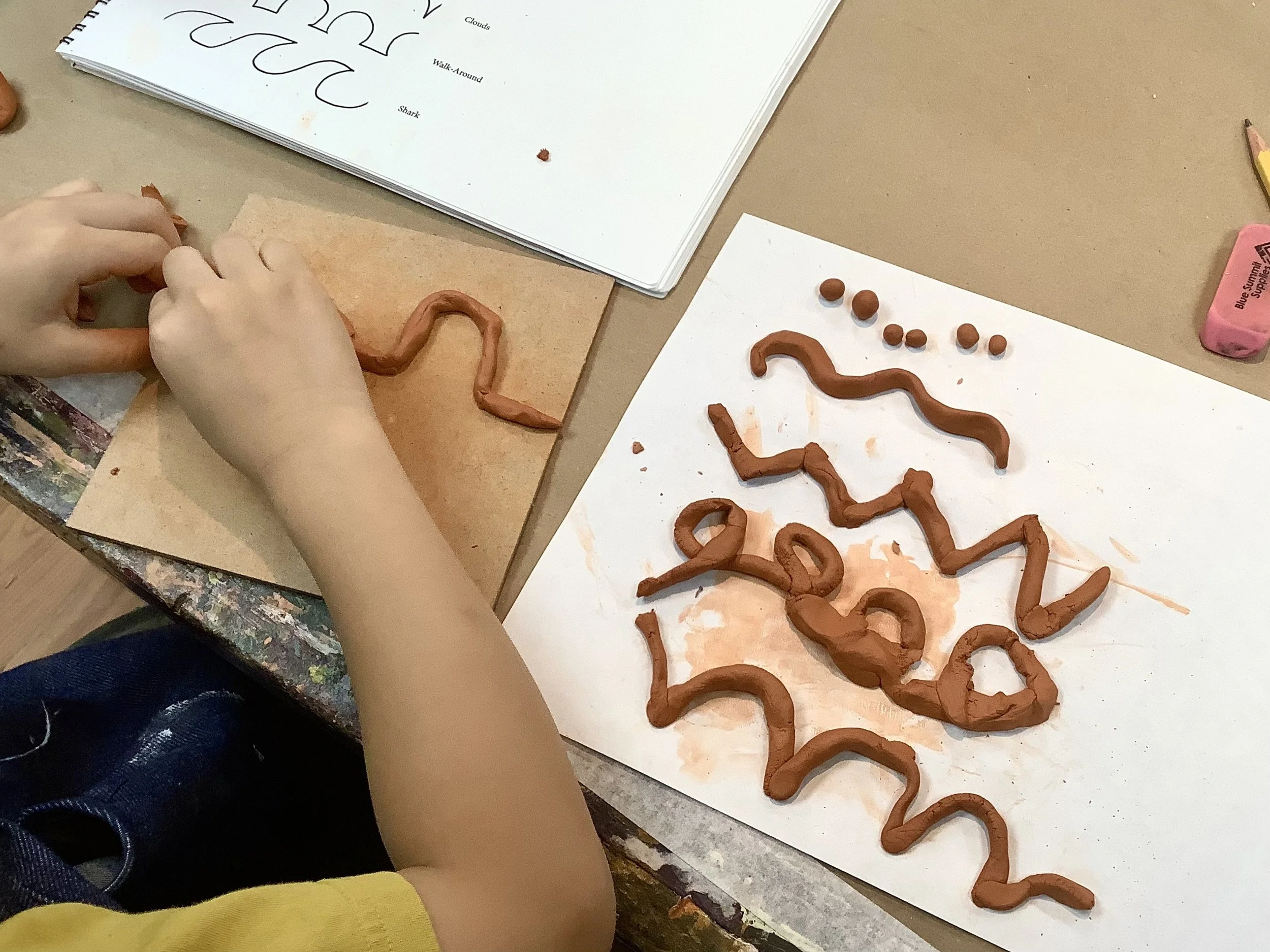 This week in Little Ashcan, our students began an exciting two-part project focused on the artistic element of line. They explored how line can be used both in two-dimensional design and three-dimensional form—starting with sketches and moving into clay.