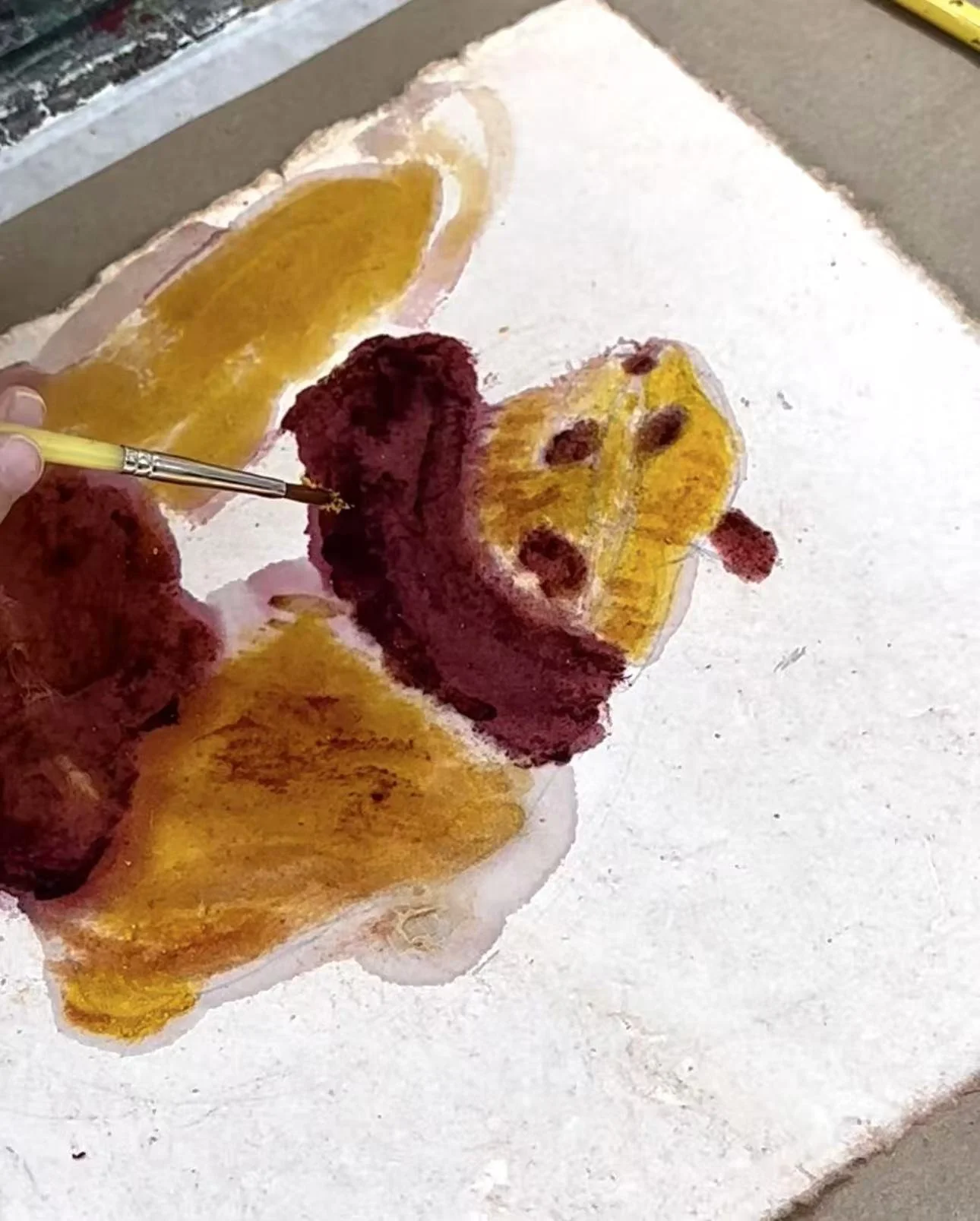 Inspired by this exploration, students were introduced to the idea of working with natural pigments in their own artwork. For this project, they created monochromatic paintings using beet juice as their primary medium. This approach encouraged them to focus on value, tone, and subtle variations within a single color, rather than relying on a wide color palette.